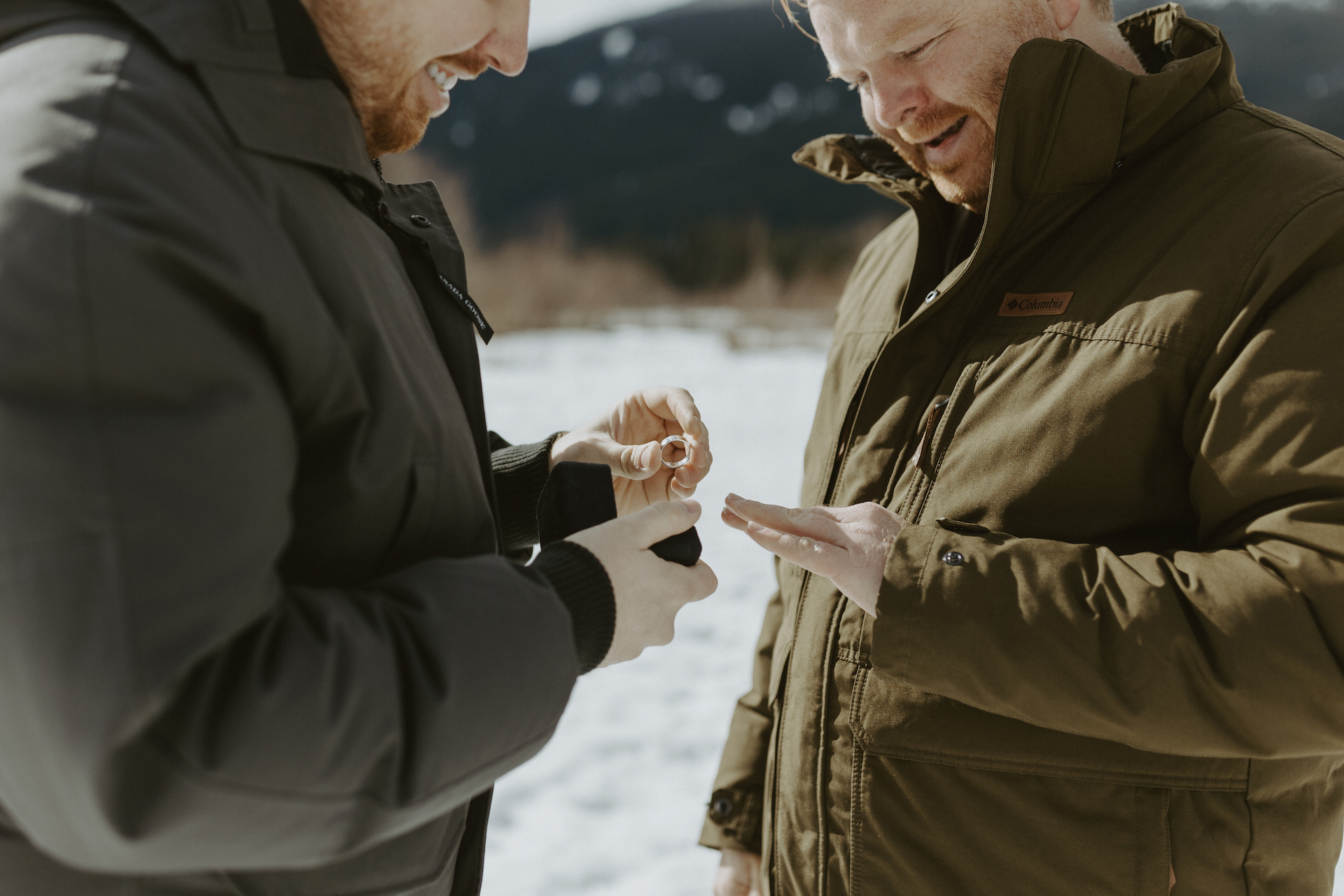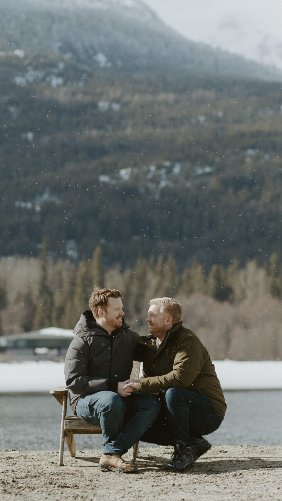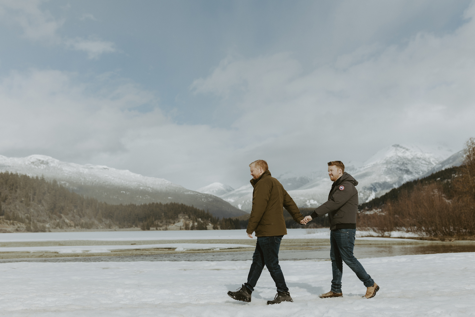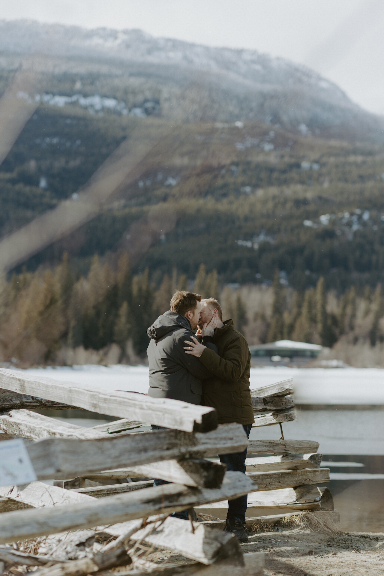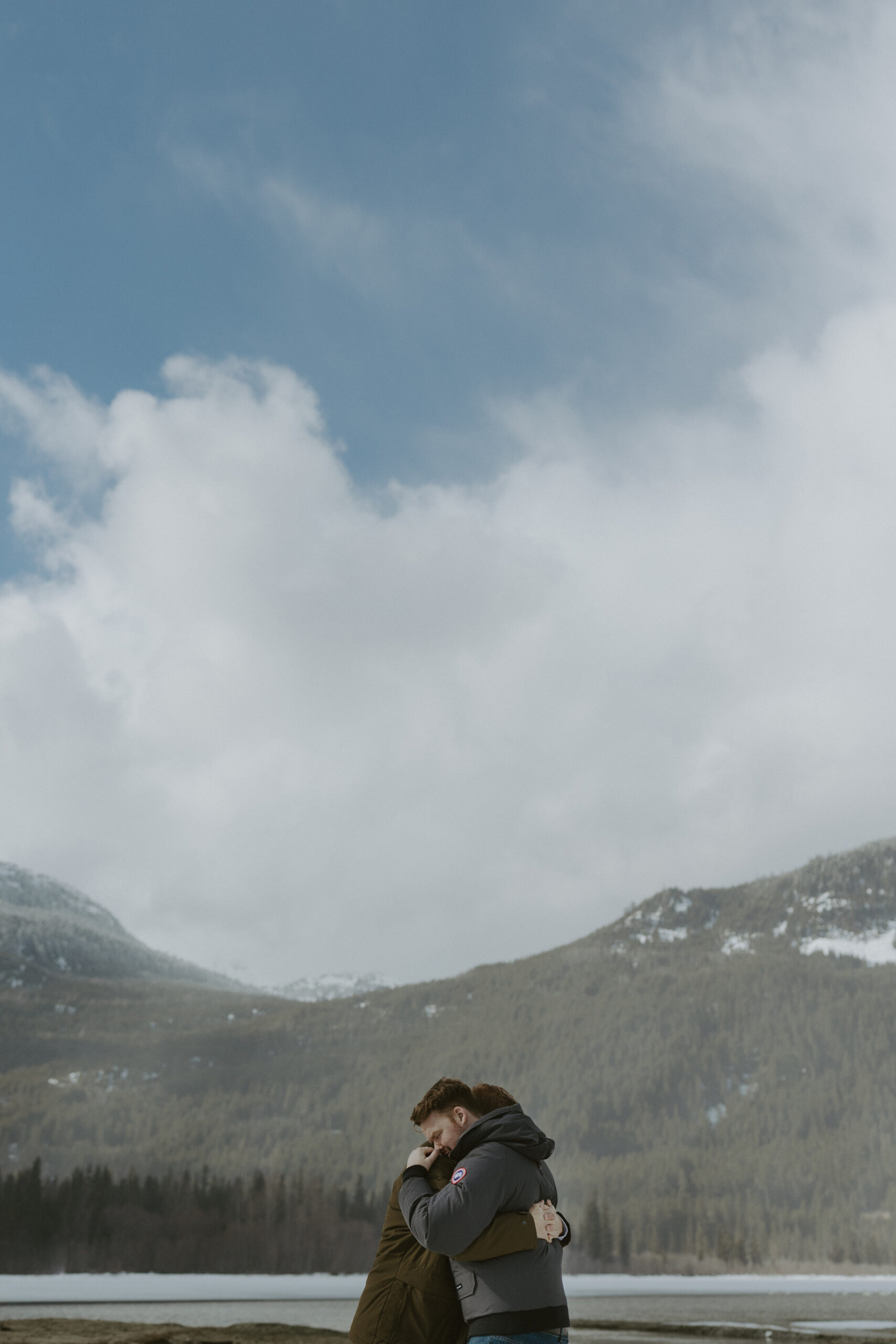 Beautiful cloud dotted blue skies the backdrop to the majestic Fitzsimmons Mountain Range that is the home of Whistler surrounding us, the only words from the moment that really mattered… as he dropped to one knee, “Will you marry me?”… promptly followed by my “YES”. He slipped the ring that we’d bought together onto my finger. I then slipped his onto his finger. We then sealed with a hug and a kiss.